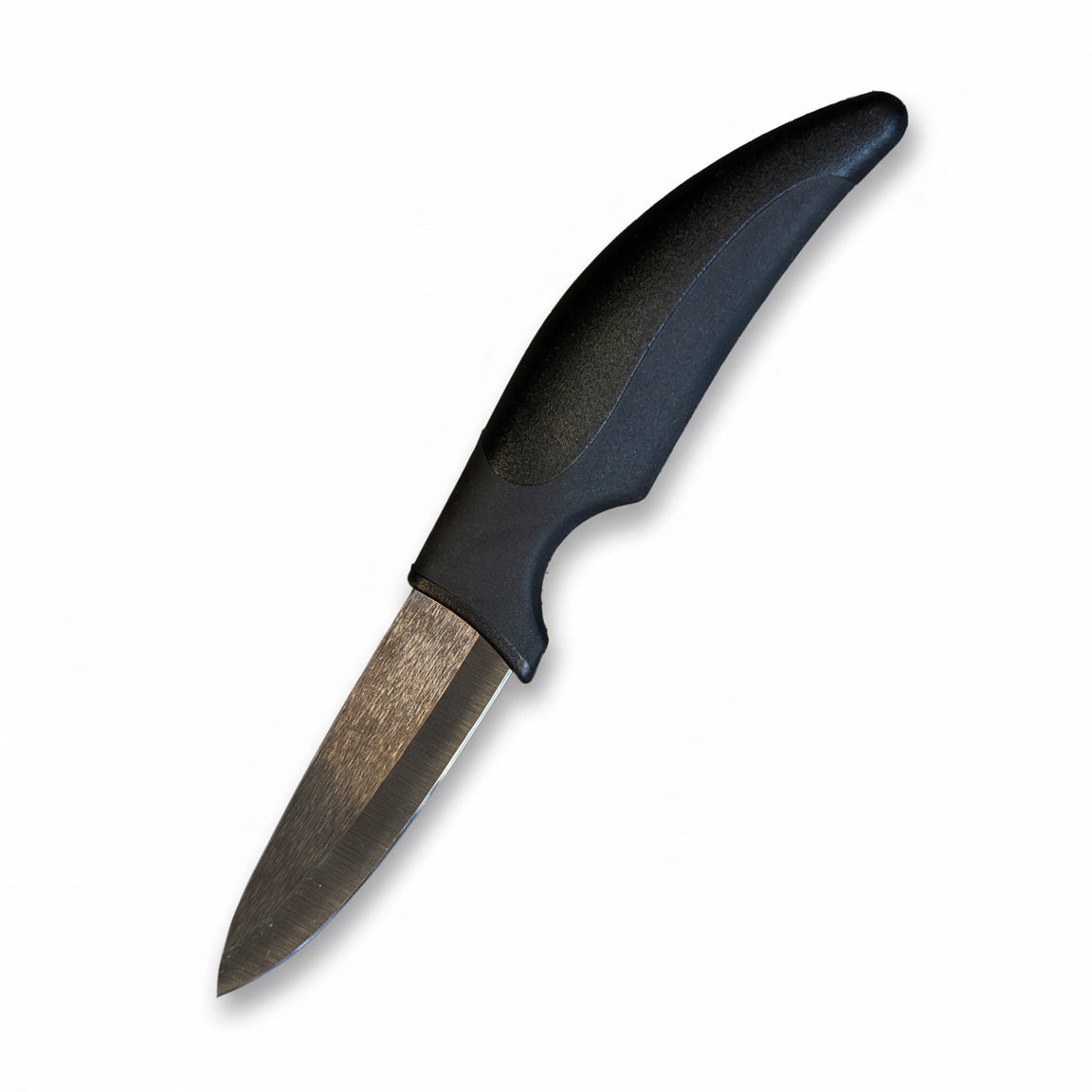 Hardy, basic, and durable. Since the Zirconia Carbide blade ships shaving sharp and is harder than any steel in the world, it will never need to be sharpened. It will survive a lifetime of normal use with no maintenance whatsoever! The rubber handle provides excellent grip in any conditions. The blade comes ready with provided 550 cord lanyard.