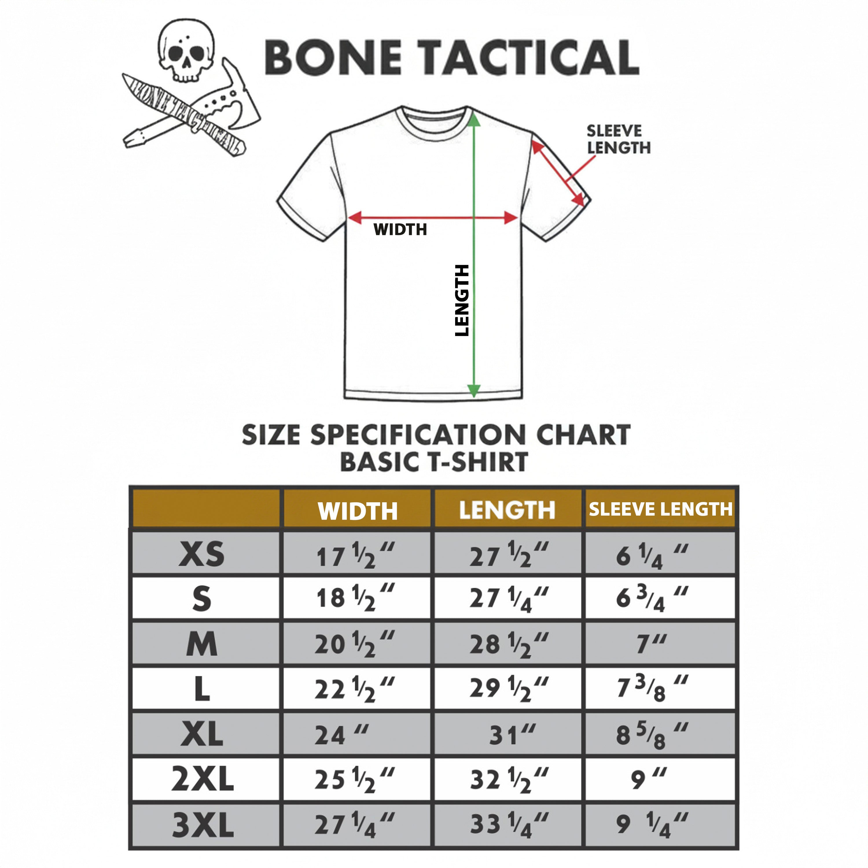 The fit is true-to-size for North America with a generally athletic cut to keep you looking sharp. They are also slightly longer than the average t-shirt to aid in concealed carry when necessary. If you prefer a looser, baggier fit, we recommend ordering one size up. *Please check the sizing chart below before ordering: Simply lay out your favorite fitting T-shirt on a flat surface and measure as shown. Choose the closest size available to your current preferred T-shirts measurements. With T-shirts, horse shoes, and hand grenades, approximate calculations are generally acceptable.*