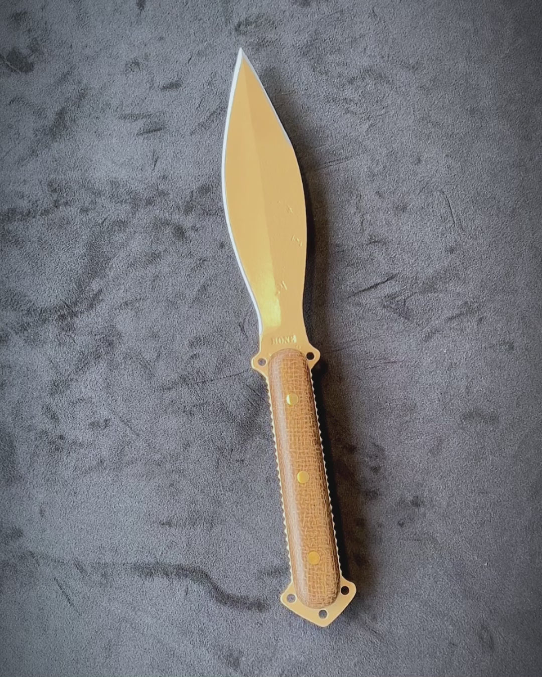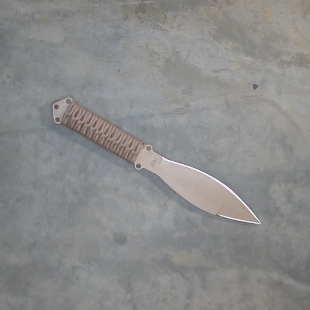 Now featuring as an option our durable proprietary micarta handle scales affixed with epoxy and Bone Tactical locking bronze rivets. These Gen 3 versions offer a more permanent handle solution to ensure a firm, comfortable, long-lasting grip. The original paracord handle option is also available at checkout for those that want a knife system more easily convertible into a spear.