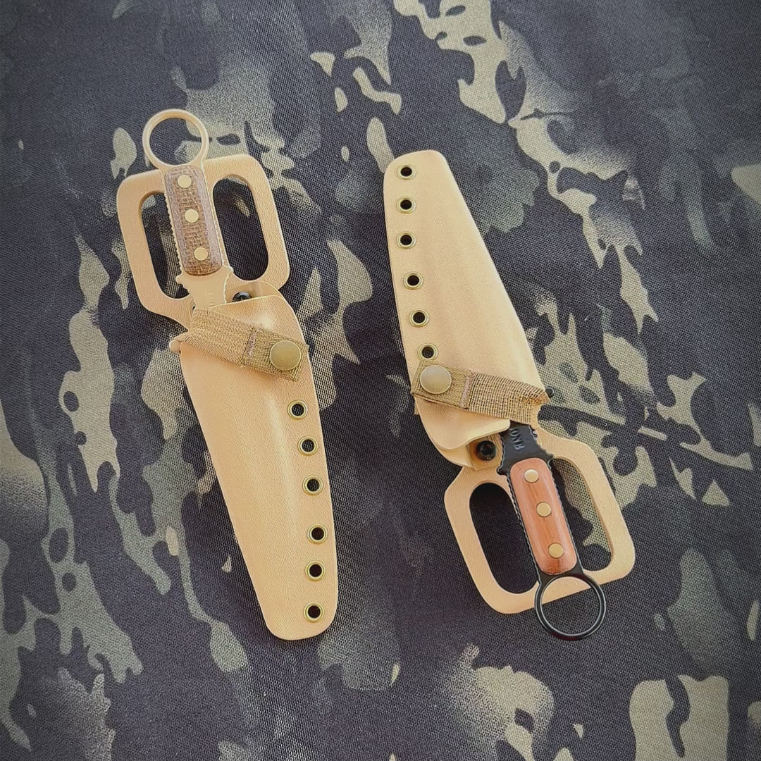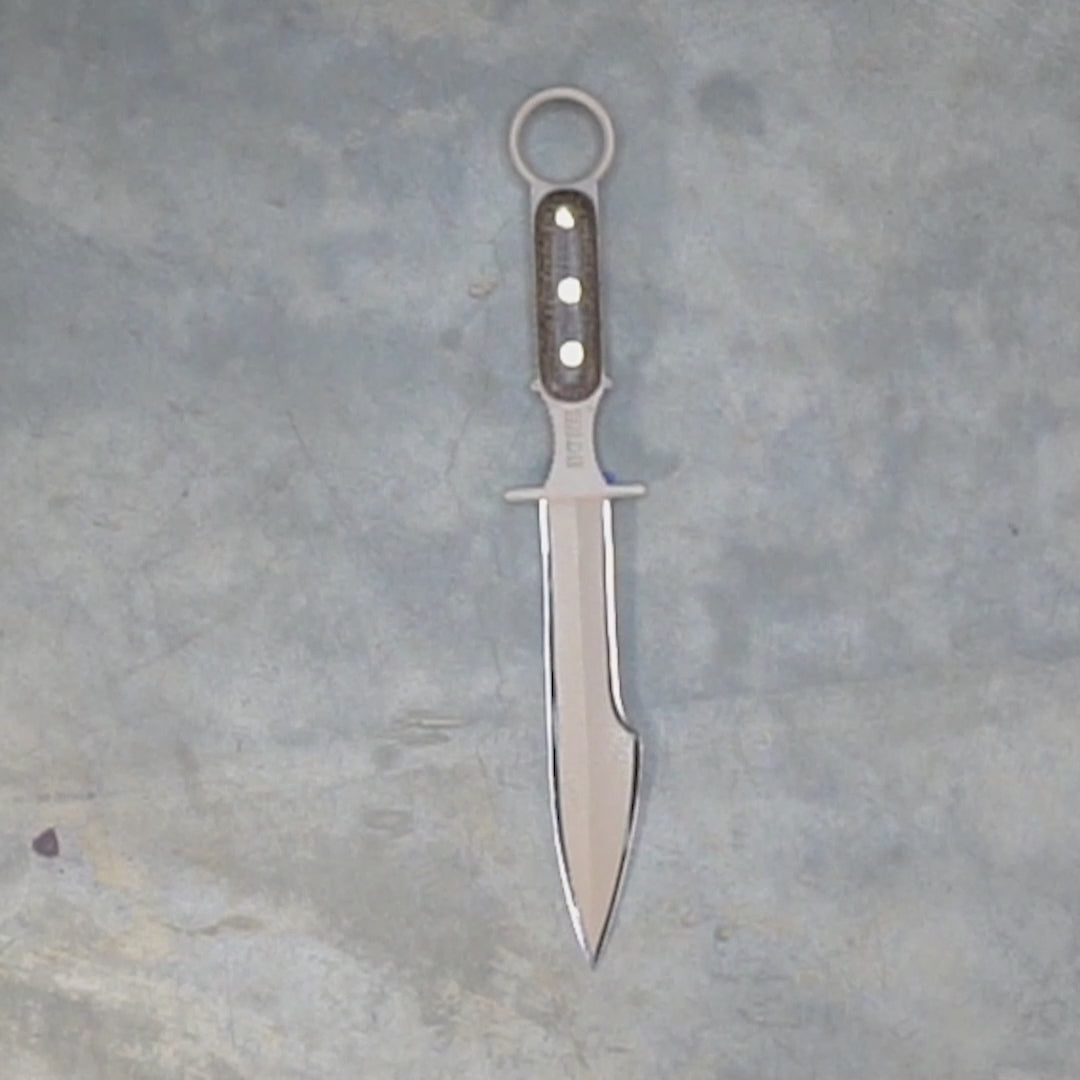 Our version of the Gladius was also specifically designed to be the best possible CQB tool for the modern warrior. This Gladius, shaving sharp like you’ve come to expect from all our custom knives, sports a stiletto style dagger point world renowned for it's penetrative capabilities, a straight edge for utility work, and a re-curve edge for added cutting power on the back end. Because the blade is no longer a modern warriors primary, the Bone Tactical Gladius is small and light enough to carry as a backup, with a modular sheath that can be worn or attached in a variety of methods.