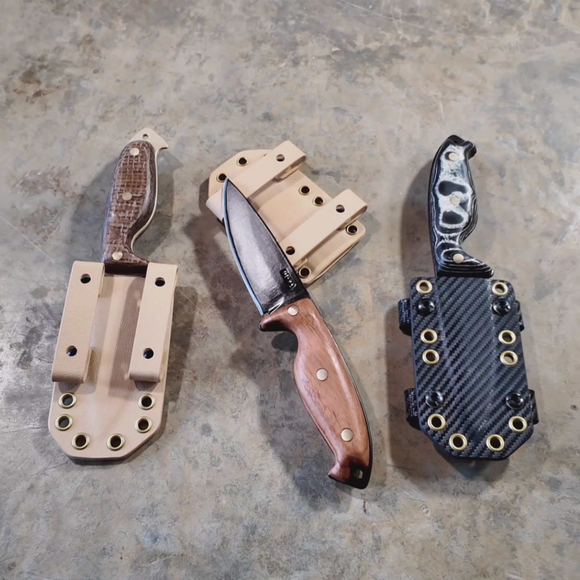 Made from our V1 Super Steel and heat treated in house, this blade is as sure to exceed expectations as it is to destroy any semblance of competition. On that note, it's 100% handmade in house (something rarely seen at this level production quality and design innovation). From the handle materials and bronze rivets, to the thermoplastic sheath system... we do it all. This ensures a knife that will reflect both art quality and our famous attention to detail.