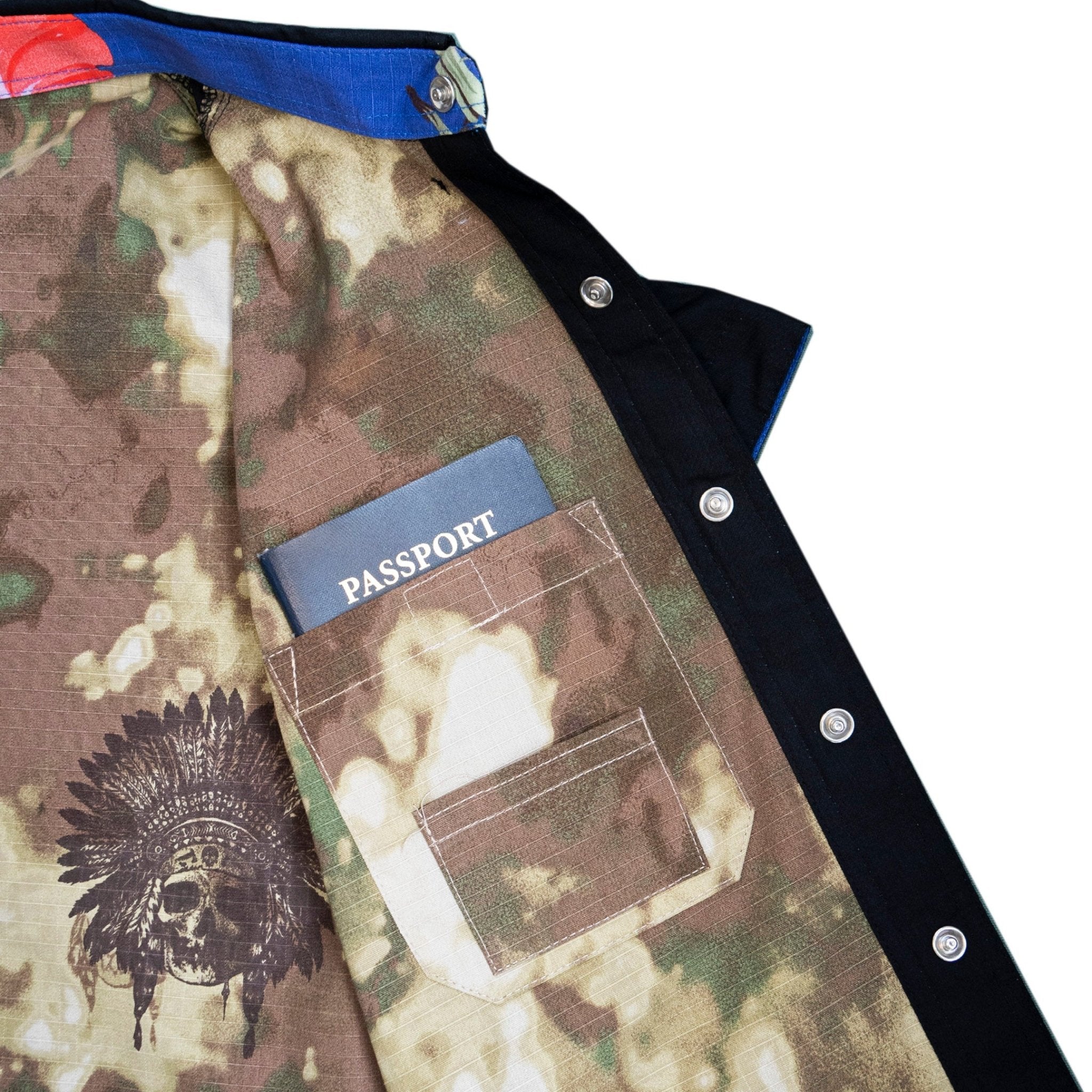 · Black Poly-Cotton blend outer with Camo Rip-Stop Inner Liner